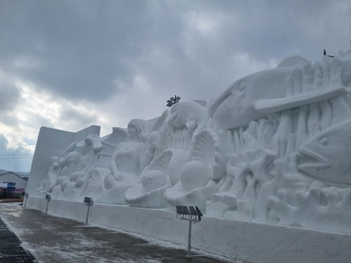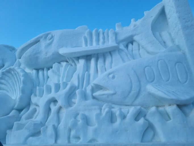 축제장의 중심지인 얼곰이성 좌우로 매년 새로운 주인공으로 펼쳐지는 눈조각은 인증사진을 찍는 배경의 최고 인기장소입니다.